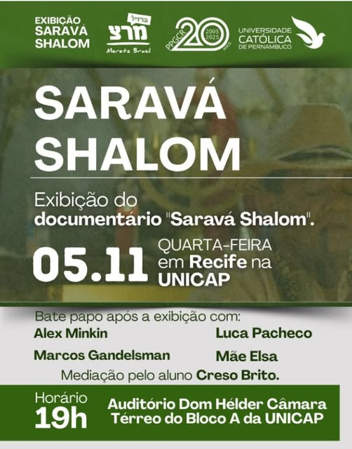 Na quarta-feira, 05 de novembro, 19h, no Auditório Dom Helder Câmara, Térreo do Bloco A da UNICAP, será exibido o documentário “Saravá Shalom”, que mostra encontros entre o sagrado afro-brasileiro e o judaísmo nordestino, junto com um bate-papo alusivo entre Alex Minkin (diretor do filme), Luca Pacheco (professor de Ciências da Religião e membro do nosso Observatório), Marcos Gandelsman (judaísmo) e Mãe Elsa (religiões afro), com mediação de Creso Brito (doutorando em Ciências da Religião). Será um bom momento para, a partir desse estudo de caso, pensarmos na dinâmica do transreligioso, que vem sendo tematizada nos estudos do nosso Observatorio das Religiões.