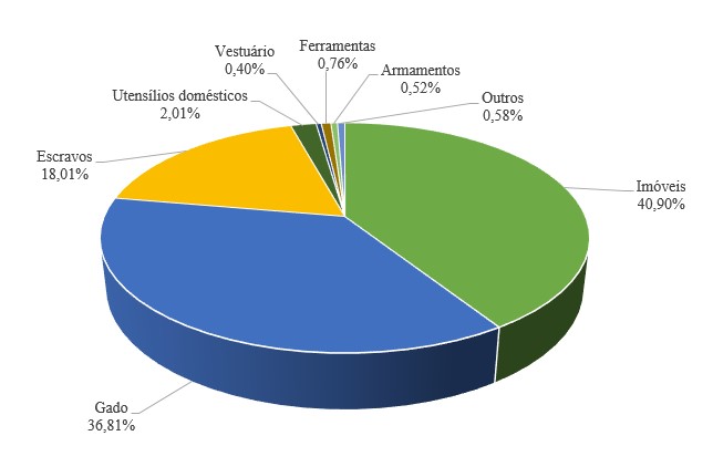 - Gráfico 2: Porcentagem dos valores individuais dos bens arrolados no inventário do alferes Pedro Soares da Silva