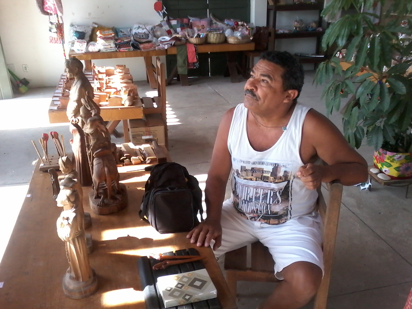 - Imagem 5 - O escultor Demar com suas peças no Centro de Artesanato em Laranjeiras-SE.