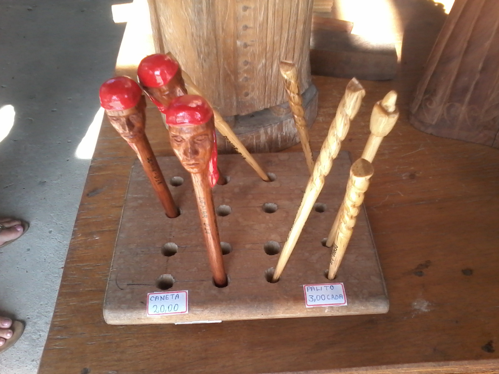 - Imagem 7 - A escultura em madeira de canetas, ornamento de cabelo feminino e da cultura popular do Nordeste (sanfoneiro e flautista de pífano) – Demar