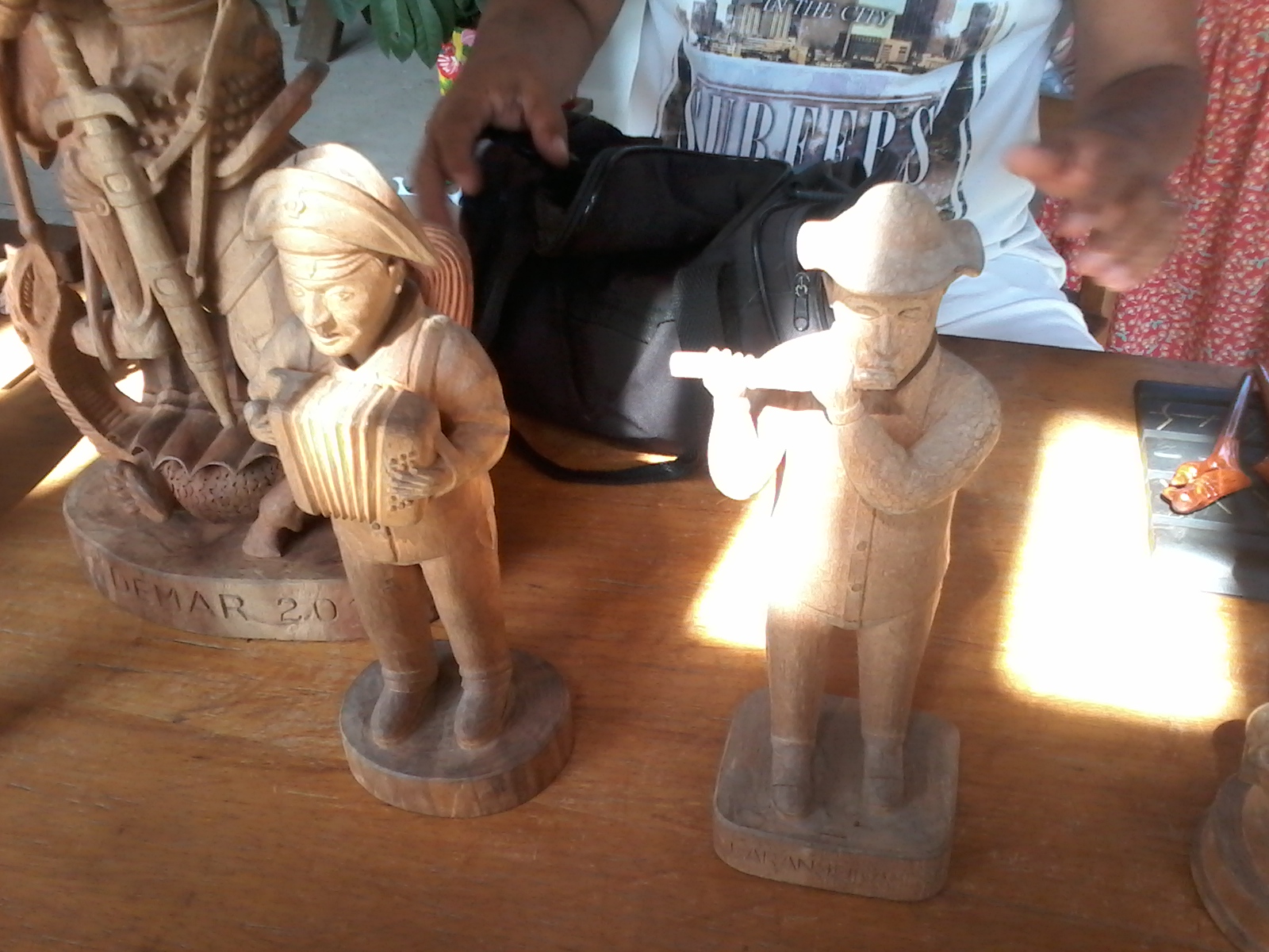 - Imagem 6 - A escultura em madeira de canetas, ornamento de cabelo feminino e da cultura popular do Nordeste (sanfoneiro e flautista de pífano) – Demar