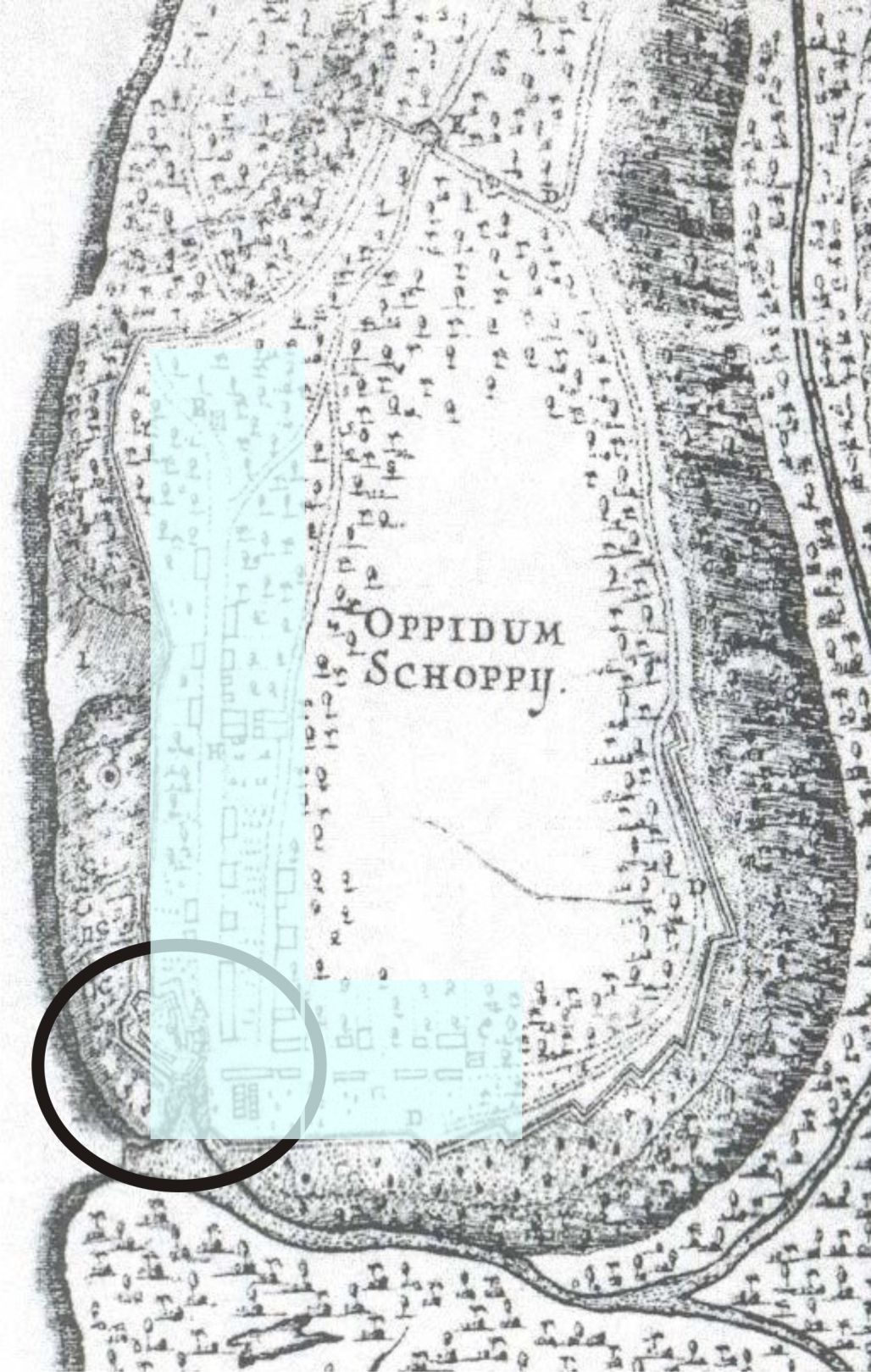 - Figura 3: Insula Tamarica (Oppidum Schoppy). 1631. Detalhe.